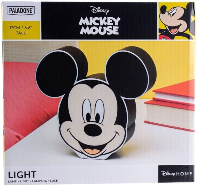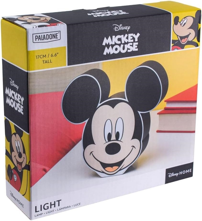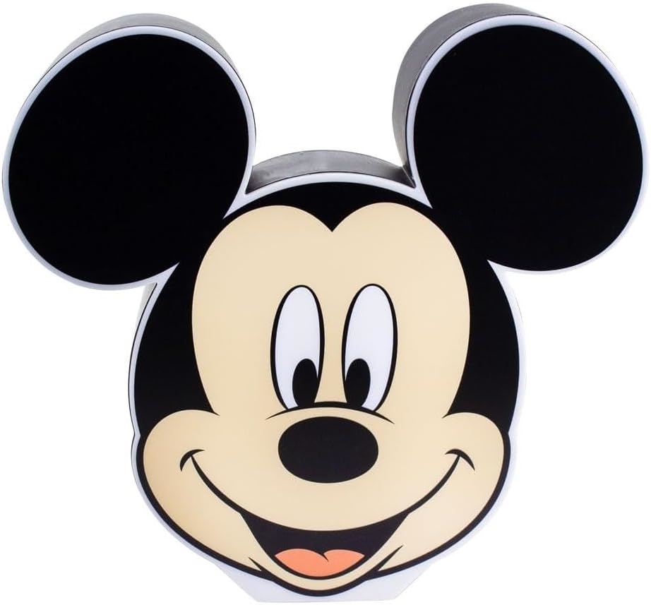 Lumina are forma capului lui Mickey Mouse. Urechile sale clasice mari și zâmbetul său strălucitor sunt imprimate pe partea din față a luminii. Lampa are o înălțime de 17 cm. Adăugați iluminarea la decorațiunile casei dvs. ca lampă de masă sau lampă de noapte. Funcționează cu 3x baterii AAA, care nu sunt incluse.