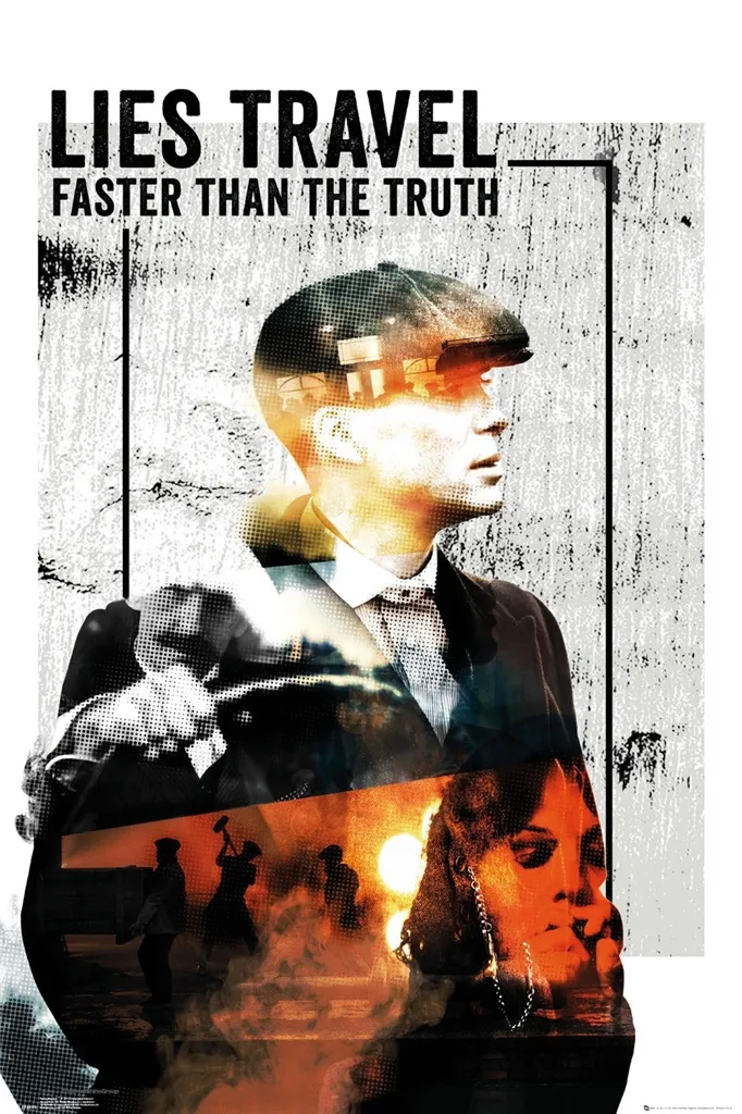 Plakát s grafikou televizního pořadu Peaky Blinders.