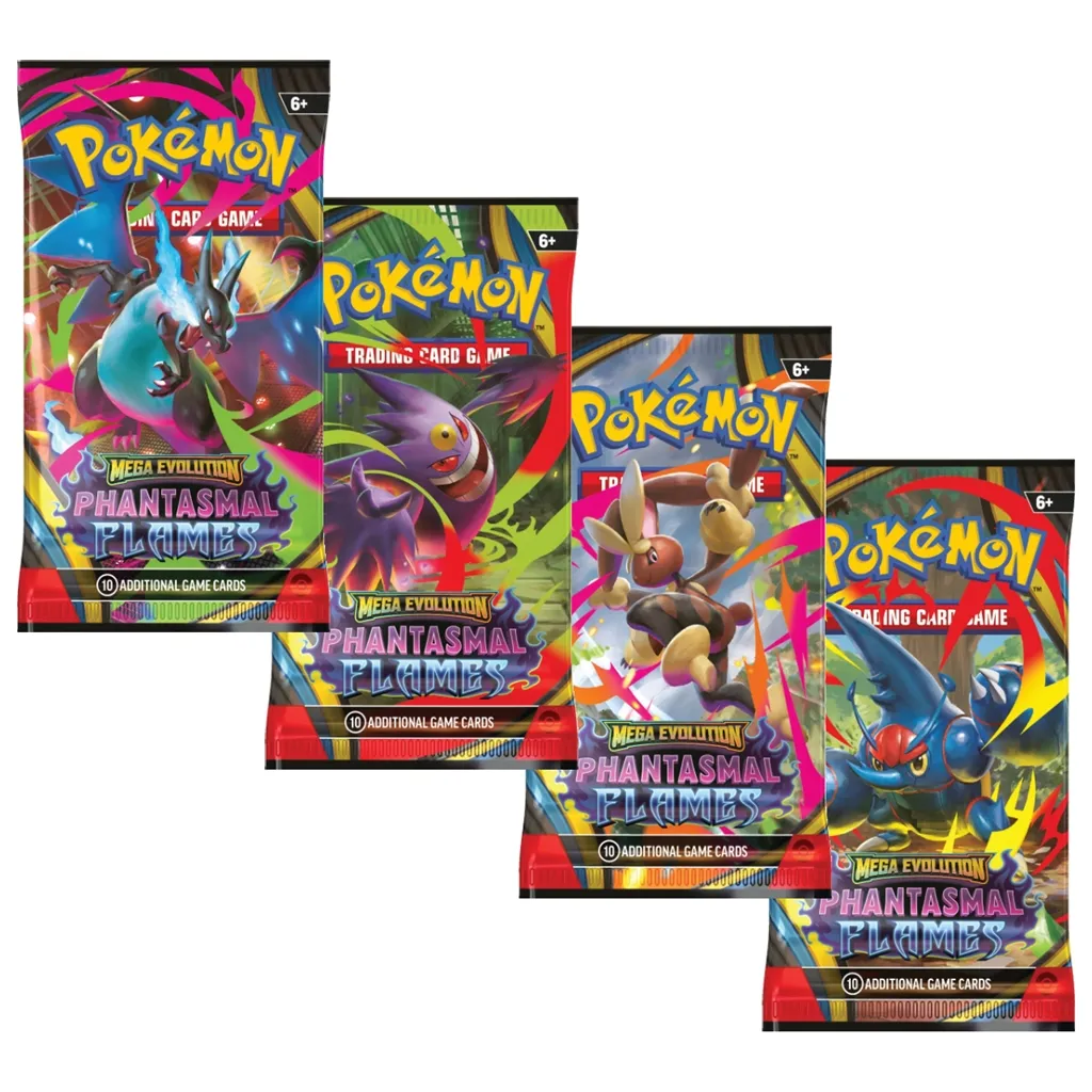Flăcările albastre se răspândesc pe câmpul de luptă întunecat, în timp ce Mega Charizard X ex se înalță și privește spre adversarii săi! Cu o privire rece care rivalizează cu flacăra, figura întunecată a Mega Gengar ex apare încet și ambii Pokémoni se pregătesc de atac. Hotărâți să-și dovedească curajul, Mega Heracross ex, Mega Lopunny ex și alți Pokémoni se aliniază pentru a da totul în extensia Pokémon TCG: Mega Evolution - Phantasmal Flames!