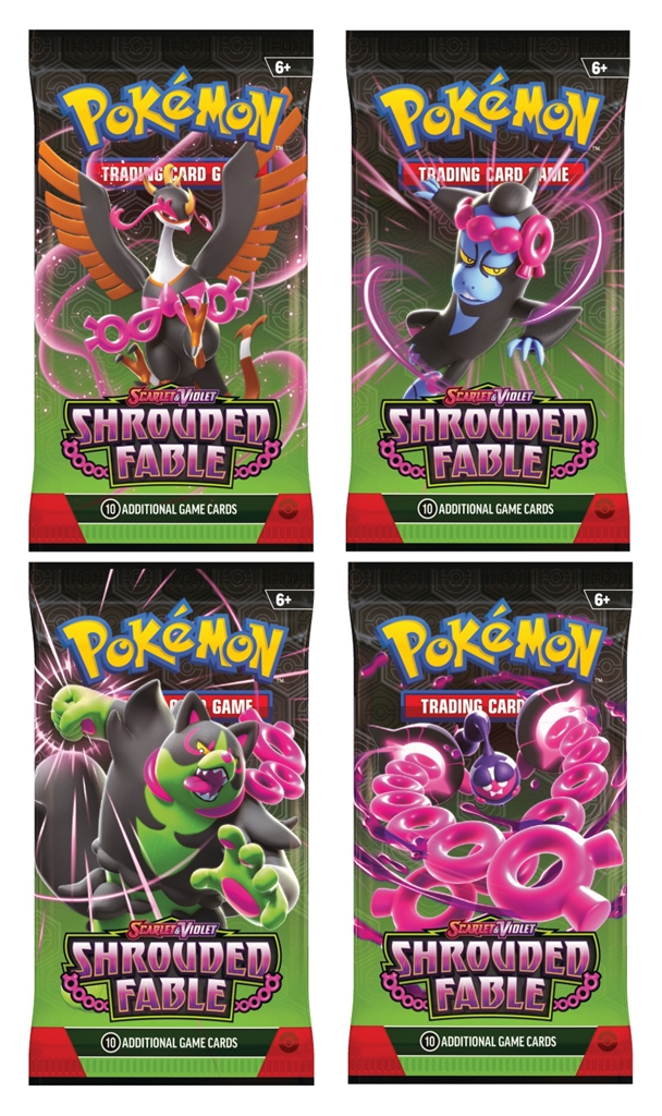 În ținutul Kitakami, zvonurile se răspândesc și amintirile înșală pe măsură ce timpul trece! Pregătește-te pentru căderea nopții și descoperă o prezență malefică atunci când Pecharunt ex poruncește Trio-ului Credincios - Okidogi ex, Munkidori ex și Fezandipiti ex - să îi îndeplinească ordinele malefice. Aceștia și alți Pokémon uimitori te așteaptă în expansiunea Pokémon TCG: Scarlet & Violet-Shrouded Fable!