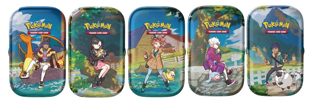 Ambalaj special al jocului de cărți Pokémon TCG, ediția Crown Zenith - o mini-cutie frumoasă din tablă, ideală ca și cadou pentru noii colecționari. Leon și Charizard, Marnie și Morpeko, Sonia și Yamper, Bede și Hatenna, Hop și Wooloo.
