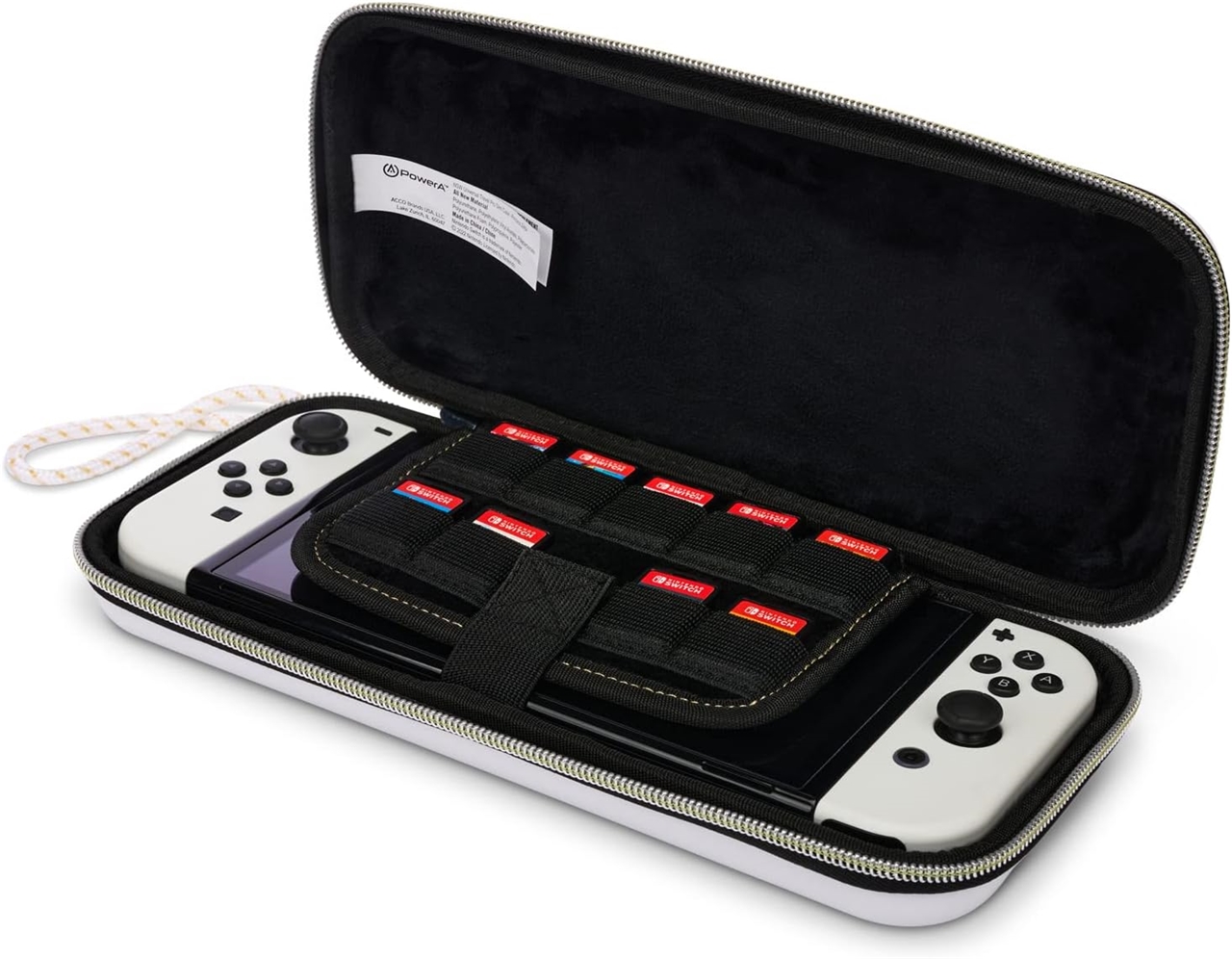Având o temă luxoasă cu tema Prințesa Zelda din The Legend of Zelda, această husă portabilă vă păstrează Nintendo Switch, modelul Nintendo Switch OLED și Nintendo Switch Lite în siguranță oriunde mergeți.