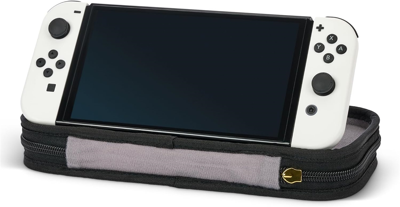 Păstrați cablurile acoperite, căștile și alte accesorii mici în buzunarul cu plasă. Un separator intern căptușit asigură o protecție suplimentară a ecranului. În plus, husa poate conține până la 10 carduri de joc Nintendo Switch.