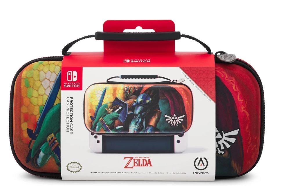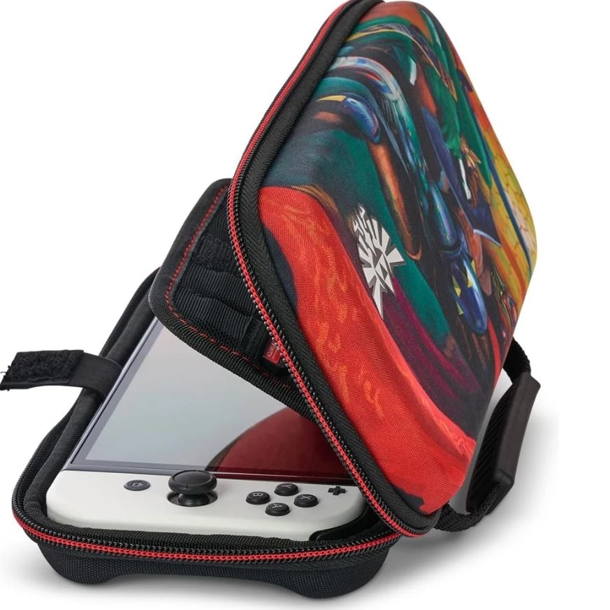 Husa de transport de lux cu tematică Zelda vă păstrează consola de jocuri Nintendo Switch, modelul Nintendo Switch OLED și Nintendo Switch Lite în siguranță oriunde mergeți. Husa dispune de un suport reglabil și un cursor de calitate.