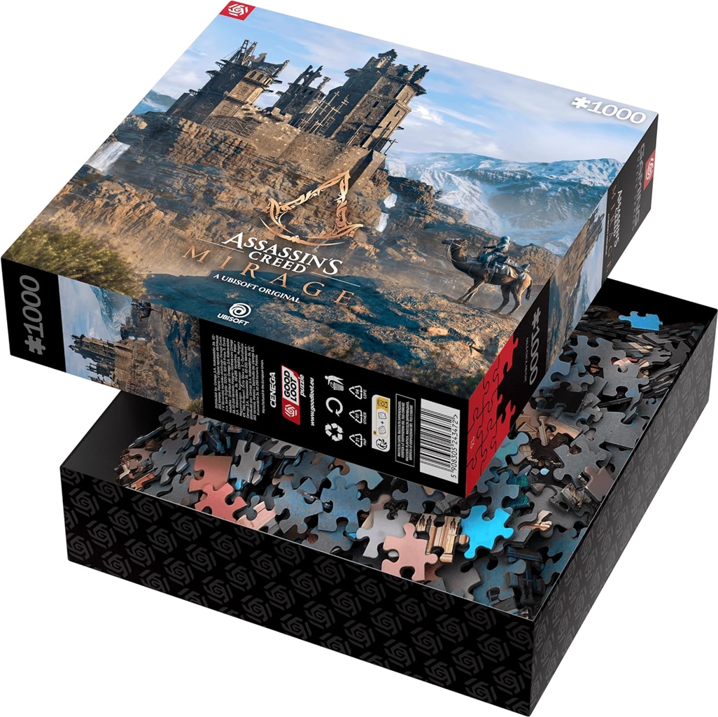 Castelul lui Assassin's Alamut! Acest puzzle frumos pentru fanii și jucătorii jocului pe calculator Assassin's Creed Mirage este format din 1000 de piese care au un efect de pânză și reduc strălucirea luminii. Piesele sunt realizate de înaltă calitate și sunt rezistente la îndoire.