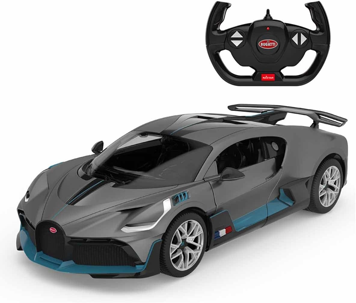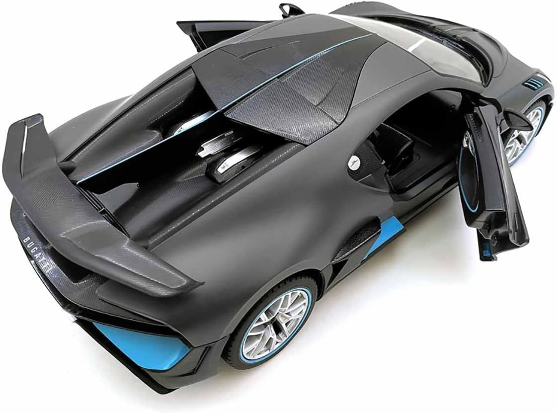 Bugatti Divo la scară 1/14 se deplasează înainte, înapoi, la stânga, la dreapta. Mașina are faruri frontale și spate funcționale. Construcție de înaltă calitate, suspensie independentă, proprietăți excelente de rulare și uși care se deschid.