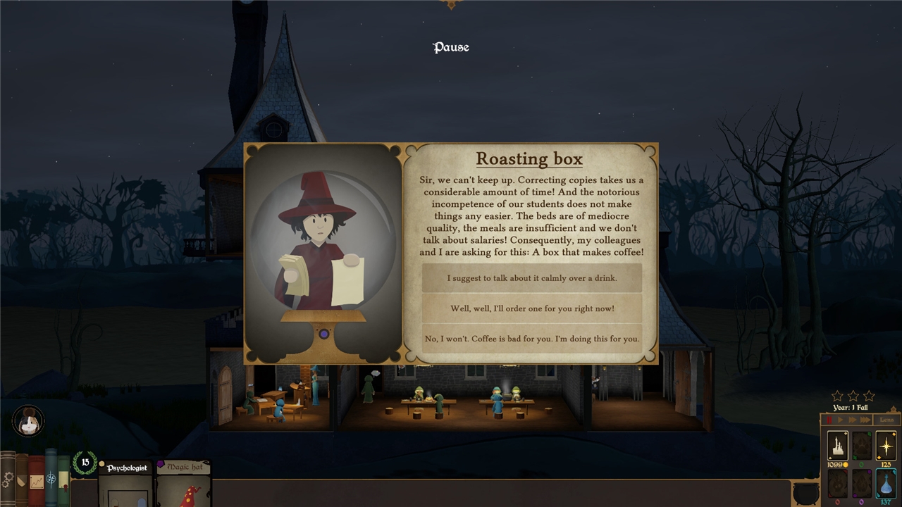 Deveniți directorul Universității de Witcher într-o lume plină de fantezie eroică. O veți transforma într-o academie de magie neagră? Un loc în armonie cu natura pentru instruirea druizilor și șamanilor? Sau ceva complet unic?
