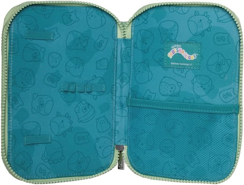 Trusa de creioane școlare Squishmallows este realizată din pluș super moale, care amintește de o bezea, și este decorată cu broderii. Trusa de creioane are două niveluri și fiecare nivel se închide cu un fermoar separat.