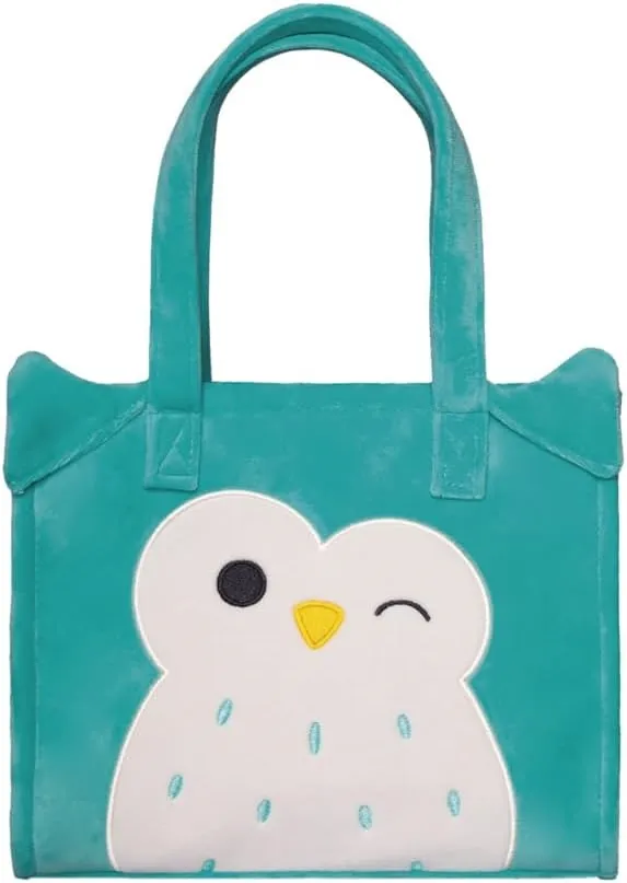 Această geantă de mână Squishmallows este confecționată din pluș super moale și drăguț, care amintește de o bezea și este decorată cu broderii.