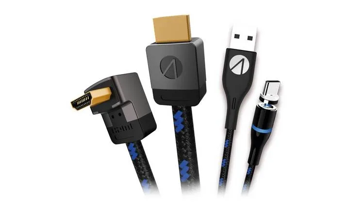 Un kit PS5 premium care conține un cablu HDMI cu o parte îndoită la 90° pentru o conectare ușoară la televizor. În plus, în cutie veți găsi un cablu USB C pentru încărcarea controlerului, care are un capăt magnetic pentru o conectare și mai ușoară.