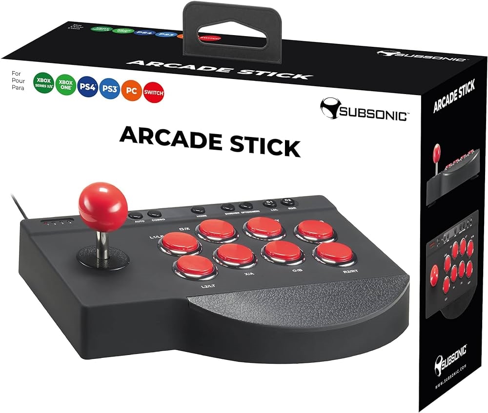 Arcade Stick, controler de joc, este alegerea ideală pentru pasionații de jocuri de lupte. Se poate lăuda cu opt butoane de acțiune cu comutatoare cu lamele, care garantează durabilitate și sensibilitate. În plus, controlerul oferă funcția Auto pentru lovituri repetitive rapide și funcția Combo, care permite programarea loviturilor și mișcărilor speciale.