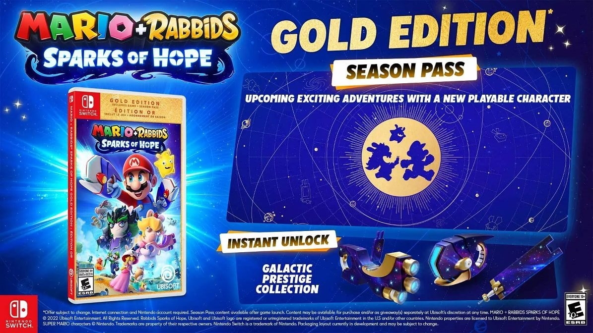 ALTE CONȚINUTURI*: Jocul de bază Season pass, care include viitoarele pachete DLC, inclusiv conținut de poveste suplimentar cu personaje, misiuni și bătălii noi. De asemenea, include Galactic Prestige Collection cu trei skin-uri de arme exclusive și ultra-stylish pentru echipa ta, care pot fi deblocate imediat. Salvează galaxia, dar fă-o cu brio! *Oferta se poate modifica. Este necesară o conexiune la internet și un cont Nintendo. Conținutul Season Pass va fi disponibil la lansarea jocului. Conținutul poate fi disponibil pentru cumpărare și/sau ca și cadou(e) separat în orice moment, la discreția Ubisoft. Bonusul de precomandă Megabug s-a întors și este egal cu 9 skin-uri noi pentru arme! Precomandă acest joc pentru a-ți îmbrățișa pe deplin latura întunecată și pentru a schimba aspectul armelor tale din joc. În acest pachet cosmetic sunt incluse opțiuni pentru toți membrii partidului tău. Acum ieșiți și salvați galaxia!