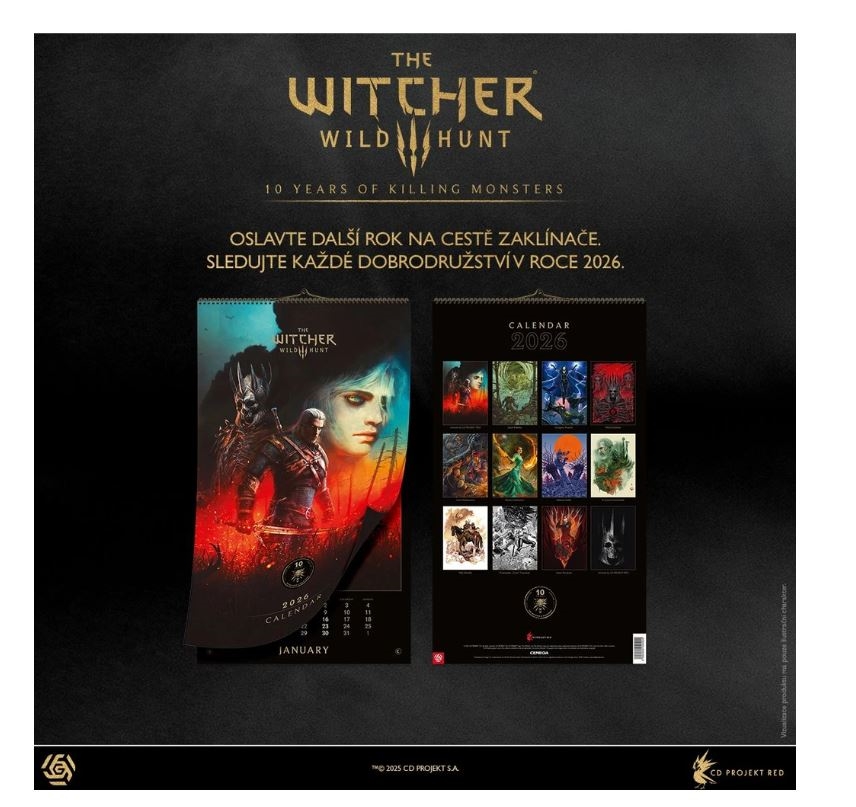 Acest calendar mare de perete, decorat premium, vă va însoți în 2026 în stilul The Witcher. În fiecare lună vă va dezvălui una dintre cele 13 lucrări de artă unice, create special pentru a celebra a 10-a aniversare a jocului. Datorită dimensiunilor 40 x 68 cm și a legăturii spirale cu agățătoare, va deveni punctul focal al oricărui perete, fie acasă, fie la birou. Pregătiți-vă ca fiecare privire aruncată asupra calendarului să vă amintească de momentele epice și personajele pe care le-ați iubit.