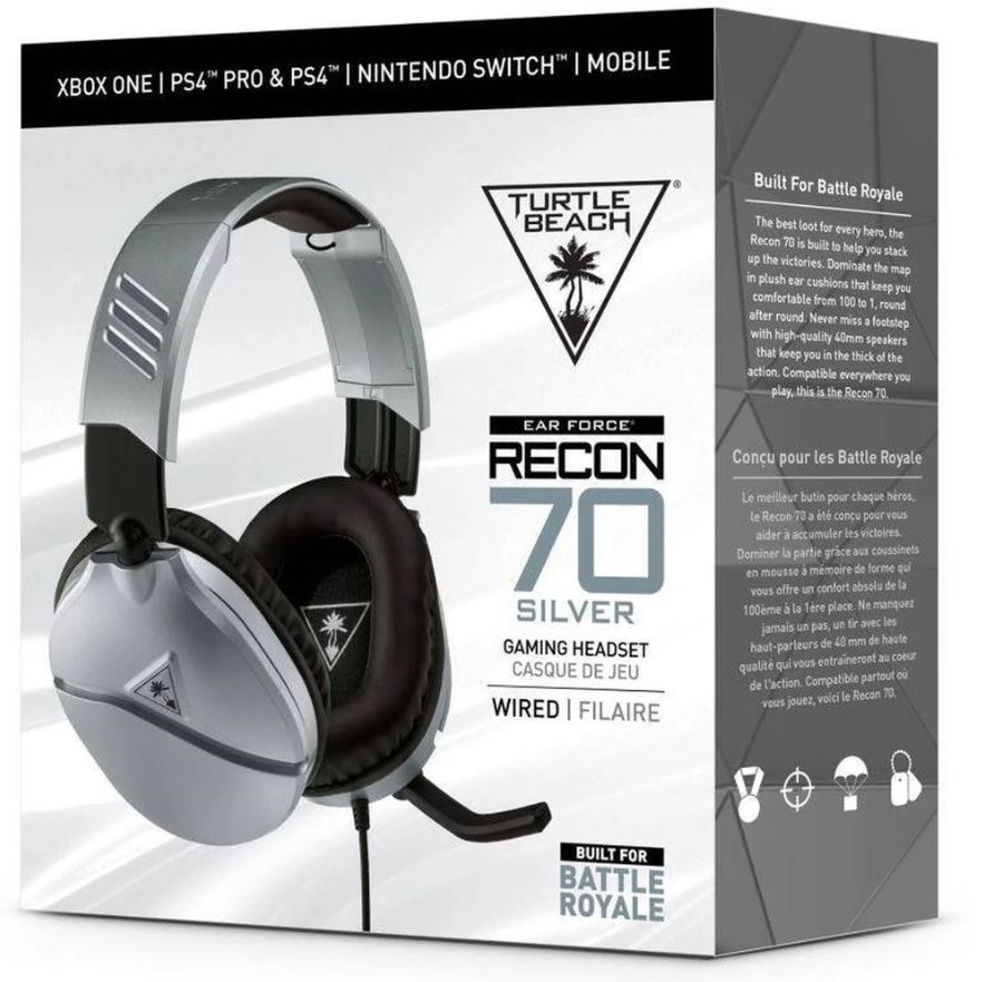 Căști de gaming Turtle Beach Recon 70 cu fir, mufă jack de 3,5 mm, difuzoare mari de 40 mm care oferă un sunet excelent, interval de frecvență 20 Hz - 20 kHz, microfon reglabil și detașabil, comenzi pe cablu, compatibilitate universală.