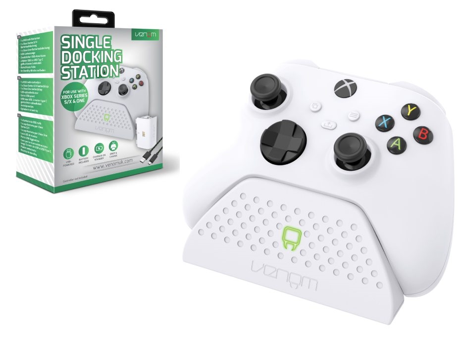 Proiectat estetic pentru a se potrivi cu consola Xbox X Series, dock-ul are un afișaj frontal cu LED care luminează în roșu atunci când se încarcă și devine verde când controlerul este complet încărcat.