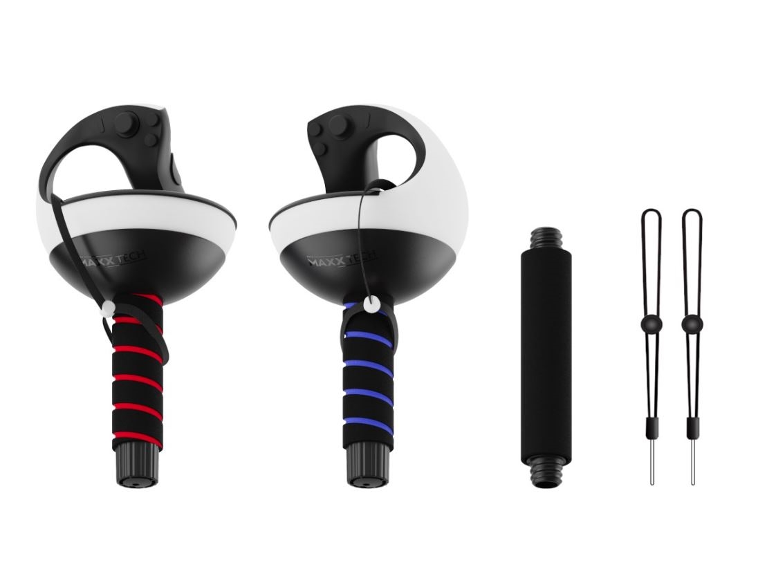 Kitul Maxx Tech VR Beat Saber este special conceput pentru controllerele PSVR2. Multifuncțional 2in1 cu dublă aderență și mod de prindere lung pentru o varietate de jocuri compatibile cu PSVR2 - Beat Saber, Kayak mirage, Whats the bat, Drums Rock, Brain Beats, Synth Riders și multe altele.