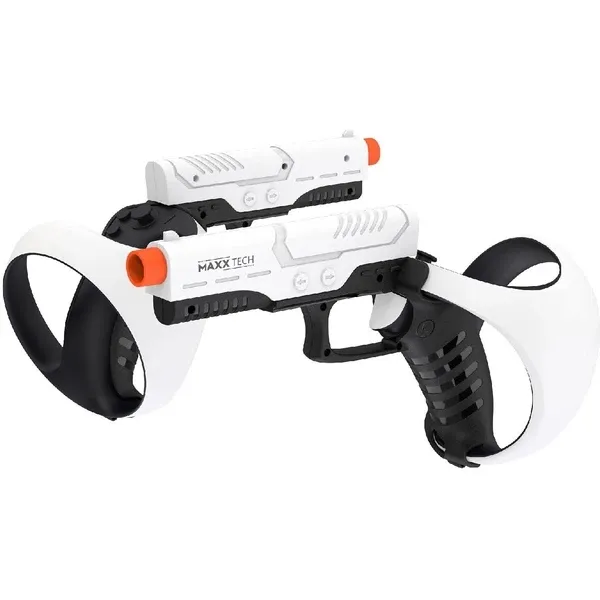 Maxx Tech VR Dual Game Guns Kit este special conceput pentru controlerele PSVR2. Oferă un design ergonomic și un echilibru adecvat al greutății pentru o experiență mai captivantă cu jocurile din perspectiva persoanei întâi (FPS), compatibile cu PSVR2, precum Pistol Whip, Resident Evil, Pavlov, The Walking Dead Saints & Sinners, Synapse și multe altele.