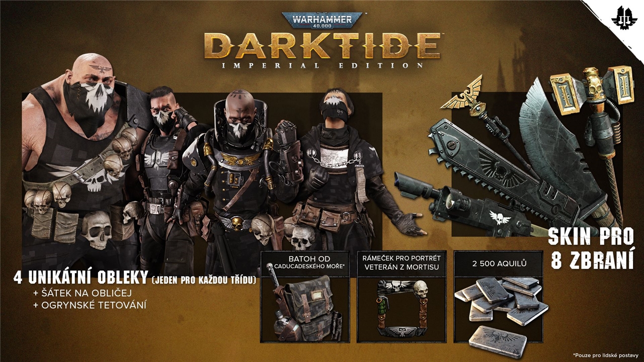 Fiți elegant și scăpați lumea de erezie cu un costum unic, cu eșarfă pe față și tatuaj ogryn, și un skin unic pentru opt arme de distanță și de luptă corp la corp.