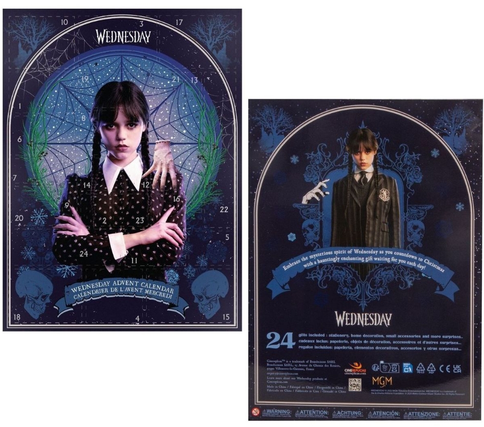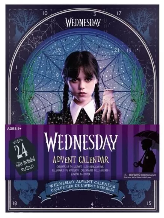 Descoperiți farmecul umorului întunecat și al stilului cu calendarul de Advent Wednesday 2025, inspirat de îndrăgitul serial din universul familiei Addams. Acest calendar oferă 24 de cadouri originale licențiate, care vor bucura toți fanii Wednesday Addams – și asta fără niciun dulce! În fiecare zi vă așteaptă o surpriză nouă cu o notă întunecată și elegantă.