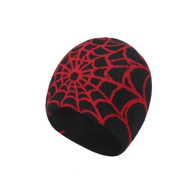 Winter Hat with Spider Web - Black/Red
