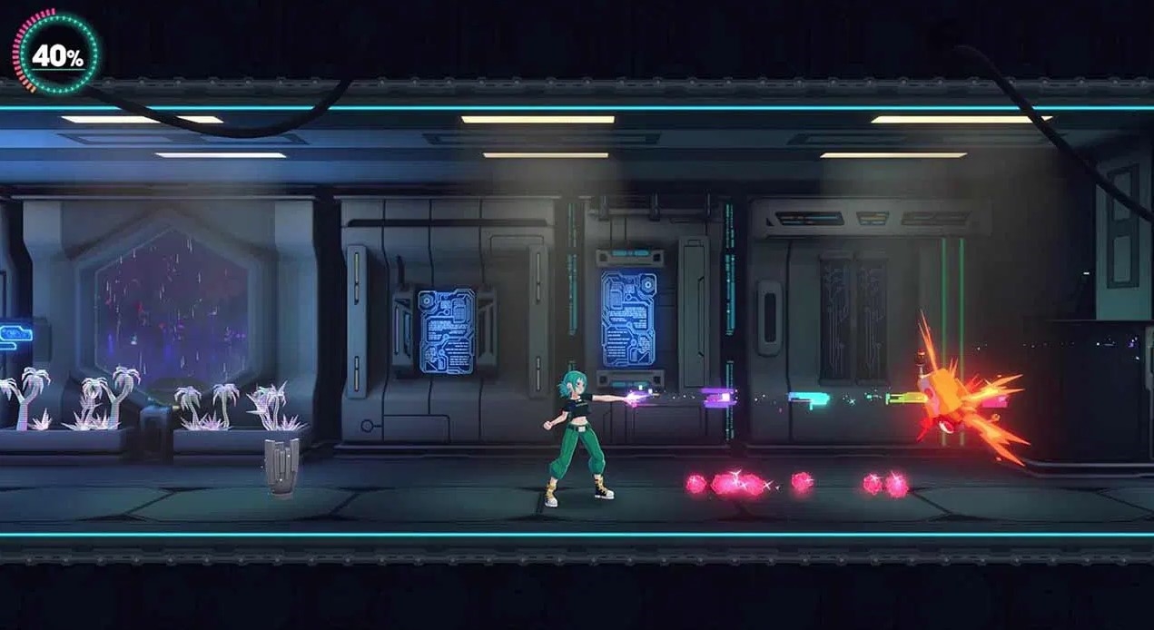 - **Platformă 2D** - Emi trebuie să sară, să tragă și să se strecoare prin valuri de roboți și inamici extratereștri. Pe parcursul jocului, își dezvăluie abilitățile ascunse care îi oferă îmbunătățiri sălbatice și biohack-uri, permițându-i să ajungă în zone anterior inaccesibile.